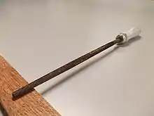There is no unitary international standard for file nomenclature; however, there are many generally accepted names for certain kinds of files. A file is "blunt" if its sides and width are both parallel throughout its length.[2] It is "tapered" if there is a reduction in its dimensions from its heel toward its point. A file may taper in width, in thickness, or both.[2] A "tang" is a protrusion at the heel, tapered, parallel sided, or conical, for gripping, inserting in a handle, or mounting in a chuck.[2]