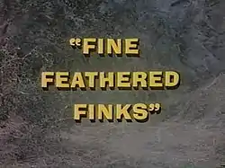 "Fine Feathered Finks" is a first-season episode of Batman, first airing as its third episode on ABC January 19, 1966. It was repeated on August 31, 1966 and May 17, 1967. Burgess Meredith made his debut as The Penguin in this episode.