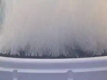 Fine bubble diffusers produce a plethora of very small air bubbles which rise slowly from the floor of a wastewater treatment plant or sewage treatment plant aeration tank and provide substantial and efficient mass transfer of oxygen to the water.[1] The oxygen, combined with the food source, sewage, allows the bacteria to produce enzymes which help break down the waste so that it can settle in the secondary clarifiers or be filtered by membranes. A fine bubble diffuser is commonly manufactured in various forms: tube, disc, plate, and dome.[2]