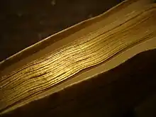 The gilded page edges of Robert Hayman's Quodlibets, a book published in the hand-press period