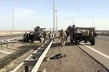 During the First Battle of Fallujah, U.S. Marines from 2nd Battalion, 1st Marines block off Fallujah's Highway 1.