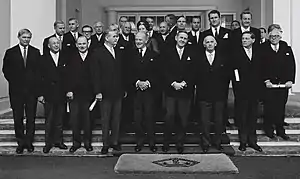 ![]() Governor-General Lord Casey with first arrangement of newly appointed ministers to the Gorton ministry | |