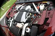 The Karma is a range-extended electric vehicle or series hybrid driven by a pair of 120 kW (161 hp) electric motors that receive power from a 20.1 kWh lithium ion battery supplied by A123 Systems and/or an engine powered generator. The battery pack runs down the center of the car, between the pairs of left-hand and right-hand seats, preventing a rear bench and seating four rather than five passengers. Once the battery is depleted, or when the driver activates the "Sport" paddle on the steering wheel, the front-mounted 260-hp, 2.0-liter Ecotec four-cylinder direct-injection turbocharged gasoline engine powers a generator that sends electricity directly to the drive motors. The engine is sourced from General Motors.[2][27] The battery can also be charged from the grid, making the vehicle a type of plug-in hybrid electric vehicle (PHEV).