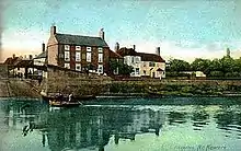 Fiskerton Ferry from a tinted postcard c.1907 with the large redbrick building mostly-known as Bromley Arms