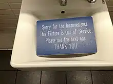 A bathroom sink fixture out of order