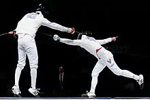 After attempting the hit, the fencer continues to move forward, running past their opponent, to avoid the riposte if he or she was parried, or a counterattack. If the fencer moves past as quickly as possible, the opponent generally only has one chance to hit the fleching fencer as they pass. Rules prevent body contact with the opponent in foil. Infraction of the rule may result in a warning, awarding a touch to the opponent, and/or expulsion from the competition.[2] In épée, contact merely results in a stopping of play without penalty, unless it was done with jostling, brutality, or to avoid being hit.