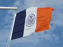 DesignA vertical tricolor of blue, white, and orange with a modified blue version of the Seal of New York City in the center.