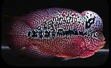 Flowerhorn cichlids are ornamental aquarium fish noted for their vivid colors and the distinctively shaped heads for which they are named. Their head protuberance is formally called a nuchal hump. Like blood parrot cichlids, they are hybrids that exist in the wild only because of their release. Flowerhorns first emerged for sale on the aquarium market in Malaysia in the late 1990s and soon became popular in many countries in Asia. They are commonly kept by hobbyists in the US, Asia, and Europe. Numerous cast-off flowerhorns have been released to the wild, especially in Singapore and Malaysia, where they have become an invasive pest animal. Their importation is banned in Australia.
