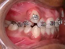 • Fluoride application around orthodontic bands and brackets[9] (See image to right)