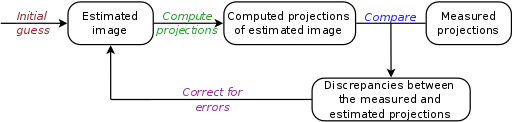Note that can account for noise, acquisition geometry, etc. The Fly Algorithm is an example of iterative reconstruction. Iterative methods in tomographic reconstruction are relatively easy to model:
