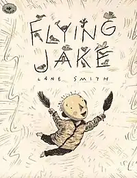 Flying Jake is a children's picture book by Lane Smith. It was originally published in 1988 by Macmillan Publishing Company and reprinted by Viking Press in 1996.[1] In this wordless story, a boy named Jake takes flight in pursuit of his pet bird, which has flown out of its cage and through a window. Flying Jake was the first independent work by Smith, who later illustrated The True Story of the 3 Little Pigs! and The Stinky Cheese Man and Other Fairly Stupid Tales.[2]