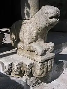 A legend tells that Saint Veranus, bishop of Cavaillon, rid the Sorgue of a horrible Drac, a devil or dragon, the Coulobre(fr). The Coulobre, whose name could be derived from the Latin word coluber (snake), was a winged creature who lived in the Fontaine de Vaucluse.[8] According to legend, she coupled with dragons who then abandoned her, forcing her to raise on her own the small black salamanders to which she gave birth. She was desperate for a new husband and a father for her children but her ugliness repulsed all suitors.[8]