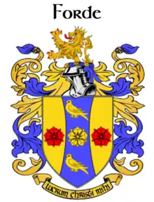 {{cite book}}: CS1 maint: location missing publisher (link) - ↑ "Forde Name Meaning, Family History, Family Crest & Coats of Arms". houseofnames.com. January 2000.