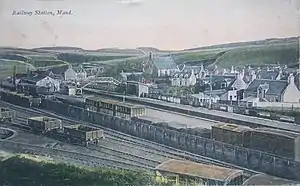 Lack of subscription funds had prevented progress on the construction of the Fraserburgh branch, and in fact the company had considered abandoning it. However it decided to alter the route, branching from the Peterhead line at Brucklay (later named Maud) passing through Strichen, and keeping to the east side of Mormond Hill. This required another authorising Act, passed on 21 July 1863. The branch was opened on 24 April 1865.[3][2][4]