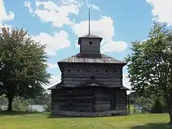 Fort Armstrong (1816–1836), was one of a chain of western frontier defenses which the United States erected after the War of 1812. It was located at the foot of Rock Island, in the Mississippi River near the present-day Quad Cities of Illinois and Iowa. It was five miles from the principal Sac and Fox village on Rock River in Illinois. Of stone and timber construction, 300 feet square, the fort was begun in May 1816 and completed the following year. In 1832, the U.S. Army used the fort as a military headquarters during the Black Hawk War. It was normally garrisoned by two companies of United States Army regulars. With the pacification of the Indian threat in Illinois, the U.S. Government ceased operations at Fort Armstrong and the U.S. Army abandoned the frontier fort in 1836.