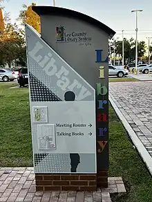 The Fort Myers Regional Library directory sign, located near the side entrance.