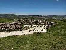 Built at an altitude of 311 metres, Ajuda Grande (also known as the Fort of Alrota) was planned to control the road that connected Sobral de Monte Agraço, where the French were repulsed, with Bucelas. It was built as an irregular polygon with eleven sides, with two connected bulwarks and with three access points, and is surrounded by a dry moat. Inside, there is a magazine, five embrasures and two traverses. The fort was designed for a garrison of 300 men and is believed to have had four 12-pounder cannon. All of the works on the Lines were numbered and Ajuda Grande was No. 18, forming part of District 5 of the second line. As part of the celebrations of the bicentennial of the Lines of Torres Vedras in 2010, the fort was recently restored. The site also contains a survey marker.[4][5]