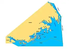 Fossingfjord is a fjord in Vestfold og Telemark county, Norway. The 4-kilometre (2.5 mi) long fjord forms part of the border between Kragerø Municipality and Bamble Municipality. The entrance to the fjord lies about 1.2 kilometres (0.75 mi) north of the island of Langøy. The small islands of Store Furuholmen and Hellesøy lie just outside the mouth of the fjord.[1]