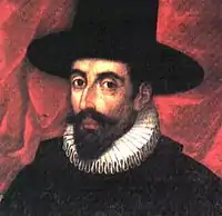 One essential member of crew was Diego, a formerly enslaved African who escaped from the Spanish and had joined Drake at Nombre De Dios in 1572.[15] Diego, by then a free man, was also a capable ship builder and knew the trade having been employed in Drake's service. Diego's fluency in Spanish and English however would make him a useful interpreter when Spaniards or Spanish-speaking Portuguese were captured. He was employed as Drake's servant and was paid wages, just like the rest of the crew.[16] As a free man he would accompany Drake assisting with local knowledge, but crucially, Drake through Diego would intend to feed false intelligence to the Spanish.[17]