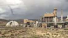 The Frank A. Tracy Generating Station is a 12 unit 1,021-megawatt (1,369,000 hp) gas-fired power station located in Storey County, Nevada and owned by NV Energy, serving Reno and the Tahoe Reno Industrial Center. Some peaking capacity is provided by diesel powered units.[1] The station employs reduced water consumption,[2] and emits about 1½ million tons CO2 per year.[3][4] It lies just east of the Patrick area, about 17 miles east of Reno, just off Interstate 80, between Exit 28 and Exit 32. It is situated on the south bank of the Truckee River, which forms the county line between Storey County and Washoe County on the other side of the river.