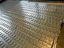 The Cherokee language in a written form (known as the Cherokee syllabary) was developed by Sequoyah in the early 19th century. This resulted in the Cherokee quickly becoming literate in their own language and then printing the first newspaper in an indigenous language, the Cherokee Phoenix, in 1828.[12] In the events leading up the Trail of Tears, the printing press was seized by the Georgia Guard and the type disappeared.[13] The revitalization of Cherokee syllabary printing type marks the first time in 175 years that the Cherokee language was available for use in letterpress printing in the eastern United States.[11]