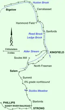 Milepost 0: Strong - Connection with the Sandy River Railroad.[28]