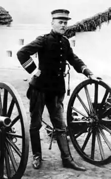 After the Kivu border question had been settled in May 1910, Olsen was charged with creating a military force in Katanga to protect the rich mining region from attempts by South African Boer trekkers to settle it.[1] Olsen worked from the end of July to the end of October to transport a force to Katanga consisting of 26 Europeans, 1,000 Congolese, 26 machine guns, 20 cannons, with their food, equipment and ammunition. The only transport was the small steamer Delcommune on Lake Tanganyika. He organized a well trained force in Katanga, and pioneered the use of bicycles by the Force Publique. He was promoted to major on 20 November 1911.[2]