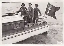 A coast guard/harbour police section, called Küstenschutz der Danziger Polizei, was also maintained. It initially was a force of 120 individuals, which were managed by Danzig's Harbour Board. One section was to provide aid in navigation, while the other maintained safety and security.[5] Arguments over the administration and authority of this branch led to much tension between the Free City's Senate and the Polish government. The Danzig Senate asserted it had the responsibility of upholding the law and could not surrender its executive powers to an external force. Poland argued its economic rights in the city could not be guaranteed if Danzig had the power to arbitrarily interfere with Polish shipping.[5] In 1933 the Senate resolved to place the harbour under the direct protection of the regular police. Poland protested to the city's High Commissioner, but ultimately the League of Nations dismissed their complaint. In June 1934 Poland and Nazi Germany reached an agreement by which the Harbour Board would directly employ 12 Poles and 12 Danzigers to protect the port, under charge of the chief pilot. The Senate granted them the status of auxiliary police.[5]