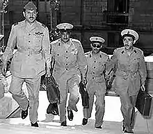 The Free Officers (Arabic: حركة الضباط الأحرار, romanized: Ḥarakat al-dubbāṭ al-ʾaḥrār) were a group of revolutionary Egyptian nationalist officers in the Egyptian Armed Forces and Sudanese Armed Forces that instigated the Egyptian Revolution of 1952. Initially started as a small rebellion military cell under Abdel Moneim Abdel Raouf, which included Gamal Abdel Nasser, Hussein Hamouda, Khaled Mohieddin, Kamal el-Din Hussein, Salah Nasr, Abdel Hakim Amer, and Saad Tawfik, it operated as a clandestine movement of junior officers who were veterans of the Palestine War of 1948-1949 as well as earlier nationalist uprisings in Egypt in the 1940s.[1][2] The nationally respected war hero Mohamed Naguib joined the Free Officers in 1949. Naguib's hero status, and influence within the army, granted the movement credibility, both within the military and the public at large. He became the official leader of the Free Officers during the turmoil leading up the revolution that toppled King Farouk in 1952.
