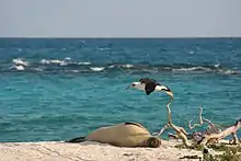 Monk seal and Noddy Terns at Tern island, French Frigate shoals