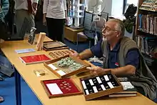 A selection of the coins were initially on display at the British Museum on 8 July 2010 for a press photocall,[1] and the entire hoard was subsequently displayed at the British Museum between 15 July and 31 August 2010.[22] Some of the coins were exhibited at Frome Library on 22 July 2010,[23] and again on 23 October 2010.[20]