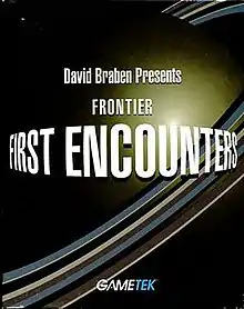 First Encounters was the sequel to Frontier: Elite II. It was released by the financially struggling publisher, GameTek in Easter 1995. Due apparently to being published in an incomplete state, the game was significantly flawed in a number of respects on release.[3] As FFE was originally riddled with many bugs, the game was extensively patched, later reissued as shareware (like Elite II) but finally withdrawn from sale. This was followed by a lawsuit brought by David Braben against GameTek, accusing the publisher of forcing the studio to release the game too early.[4] The lawsuit was settled out-of-court in 1999.[5]