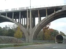 ![]() The span of the replacement bridge, as seen from Denison Ave | |