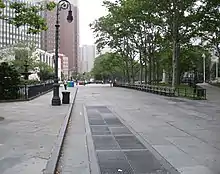 Pedestrian street in Columbus Park leading to Old Fulton Street