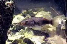 The longnose killifish (Fundulus similis) is a marine tropical benthopelagic fish of the genus Fundulus and the family Fundulidae.[2] It is endemic to the western Atlantic Ocean, ranging from along the coast of the Gulf of Mexico from the Florida Keys to Tampico in Mexico.[1] It can grow up to 12 centimeters in length. The body is rounded, elongate, and olive to silver colored with dark vertical stripes. It can be distinguished from other killifish by its long snout and a dark spot on last vertical bar.[3] This species requires to be allocated a new binomial as Fundulus similis is preoccupied by a junior synonym of Fundulus majalis, the name having been given to a Gulf of Mexico population of that species.[2]