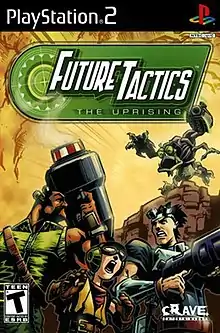 Future Tactics: The Uprising is a turn based tactical shooter video game by Zed Two. Once known as Pillage, this turn based shooter was stuck in development for a number of years before being picked up by Crave for a US release, followed shortly by JoWood for a European release. It plays similarly to the Worms 3D games and has a story penned by Paul Rose. The game features a geo-mod system in which almost anything can be destroyed, leaving battlefields scarred by craters. It was released on PlayStation 2, Xbox, GameCube and Windows.