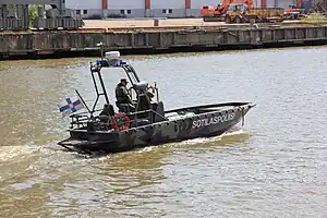 The G class, or "G-boat" also known as the Marine Alutech Watercat M8 landing craft (Finnish: G-vene, Swedish: Gruppbåt) is a type of vessel in use by the Finnish Navy and the Swedish Navy. The G-boat was originally designed for the Swedish Navy which ordered about 100 of them. It is primarily used for amphibious landings by, and transportation of, marines. It has a very low draught (approximately 20 cm) at high speeds which makes it ideal for amphibious assault even in shallow waters. It has a cargo capacity of 8 men or one metric ton.