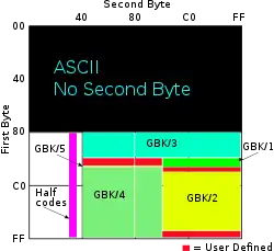 - ↑ For a finer division of this range, see GBK (character encoding) § Encoding.
