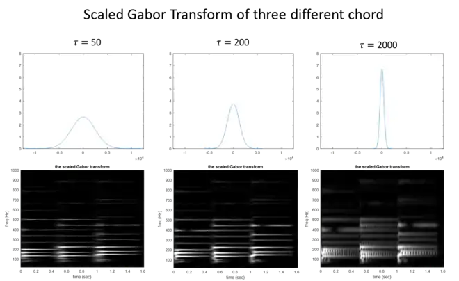 With a large , the window function will be narrow, causing higher resolution in time domain but lower resolution in frequency domain. Similarly, a small will lead to a wide window, with higher resolution in frequency domain but lower resolution in time domain.