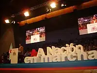 Nonetheless, the hegemonic UPG has supported independence again since 2011 while preserving its left-wing core.[24][25] Following the National Assembly of Amio (2012), the whole front readopted the idea of independence and the creation of a Galician republic.[26][27] That same year, the BNG adopted a critical position towards the European Union.[28]