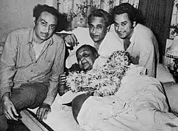 The history of the Ganguly family begins with Kunjalal Ganguly, an advocate by profession coming from a long line of lawyers from Bengal and who had settled in Khandwa, and his wife Gouri Rani Devi, the grand-daughter of Raja Shibchandra Banerjee and sister of classical singer Dhananjay Banerjee.[1] The celebrated brothers and their sister, who gave birth to the Mukherjee's of Bollywood, were born to these two. Supposedly, Kishore Kumar inherited his sense of comedy from Kunjalal. Also, the most popular film featuring all three Ganguly brothers – Chalti Ka Naam Gaadi – was, supposedly, inspired by Kunjalal's Chrysler that he bought in 1928, a year before the birth of his youngest son.[2]