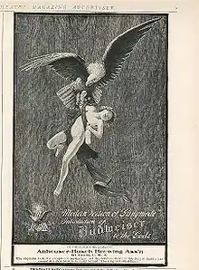 - In the early years of the twentieth century, the topos of Ganymede's abduction by Zeus was drafted into the service of commercial enterprise. Adapting an 1892 lithograph by Frank Kirchbach, the brewery of Anheuser-Busch launched in 1904 an ad campaign publicizing the successes of Budweiser beer. Collectibles featuring the graphics of the poster continued to be produced into the early 1990s.