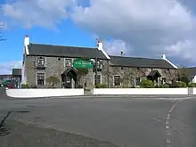 The railway level crossing has been here[7] since the Kilmarnock and Troon Railway opened in 1811,[11] but as stated, the name 'Gatehead' predates the railway. A stable was located hereabouts and the horses pulling the wagons were changed here.[12] Gatehead railway station closed in 1967, having opened with the rest of the line on 6 July 1812. The 1860 OS map shows a milepost indicating Kilmarnock at 23⁄4 miles and Troon at 71⁄4 miles.