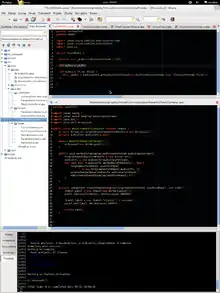 Geany (IPA:dʒiːni[4] JEE-NEE) is a free and open-source lightweight GUI text editor[5] using Scintilla and GTK, including basic IDE features. It is designed to have short load times, with limited dependency on separate packages or external libraries on Linux. It has been ported to a wide range of operating systems, such as BSD, Linux, macOS,[6] Solaris and Windows. The Windows port lacks an embedded terminal window; also missing from the Windows version are the external development tools present under Unix, unless installed separately by the user.[7] Among the supported programming languages and markup languages are C, C++, C#, Java, JavaScript, PHP, HTML, LaTeX, CSS, Python, Perl, Ruby, Pascal, Haskell, Erlang, Vala and many others.[8]