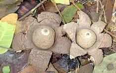 - ↑ Fazolino EP, Calonge FD, Baseia IG (2008). "Geastrum entomophilum, a new earthstar with an unusual spore dispersal strategy" (PDF). Mycotaxon. 104: 449–53. Archived from the original (PDF) on 31 March 2010.