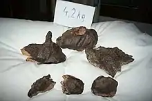 ![]() Some pieces of the Gebel Kamil iron meteorite. | |