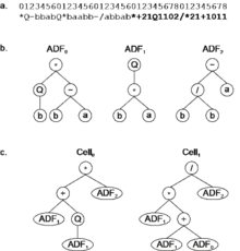 Homeotic genes have exactly the same kind of structural organization as normal genes and they are built using an identical process. They also contain a head domain and a tail domain, with the difference that the heads contain now linking functions and a special kind of terminals – genic terminals – that represent the normal genes. The expression of the normal genes results as usual in different sub-ETs, which in the cellular system are called ADFs (automatically defined functions). As for the tails, they contain only genic terminals, that is, derived features generated on the fly by the algorithm.