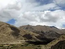 in Demchok sector, runs from Charding La in south to its confluence with Indus near Demchok village at the base of pyramid shaped Demchok Karpo (also "Demchok Lhari Karpo") peak in Demchok sector) in north. Demchok Hot Spring is near the confluence. Demchok is reachable via 3 routes: Chushul-Dungti-Fukche-Demchok National Highway (CDFD road) through the Changthang Wildlife Sanctuary along the southern bank of the Indus river,[5][6][7] Chismule-Koyul-Umling La-Demchok Road (CKUD Road) 86 km long world's highest motorable road (a title earlier accorded to Khardung La at 17,600 ft) from Chismule in Koyul Lungpa river valley to Demchok via the Umling La pass (world's highest motorable pass at 19,300 ft (5,900 m)) connecting Demchok to Koyul & Hanle,[8][9][10] Hanle-Fukche-Koyul-Demchok Road (HFKD Road) via Hanle (also see IAO - Indian Astronomical Observatory) & Fukche ALG airstrip. - Chibra Stream: