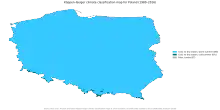 The average temperatures are rising.[27] In the period of 1980 to 2010, there were 19 Decembers without snow, and in the period of 2000 to 2010 seven. December 2006 was the warmest one in Poland since 1779. In most of Poland, average temperatures rose by 3-5 degrees Celsius during the last three decades.[28] These changes can be attributed to climate change.
