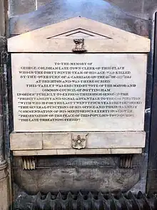 He was in Brighton on 18 September 1815, returning in a gig with T. Buckley coming down Church Hill in Brighton, when the horse took fright and ran away. When it hit a post, it overturned, and Coldham landed on his head and was killed.[3] He was buried in the parish church in Brighton, and a memorial erected in St Mary's Church, Nottingham by the Mayor of Nottingham and the Council. He was succeeded as Town Clerk of Nottingham by Henry Enfield.